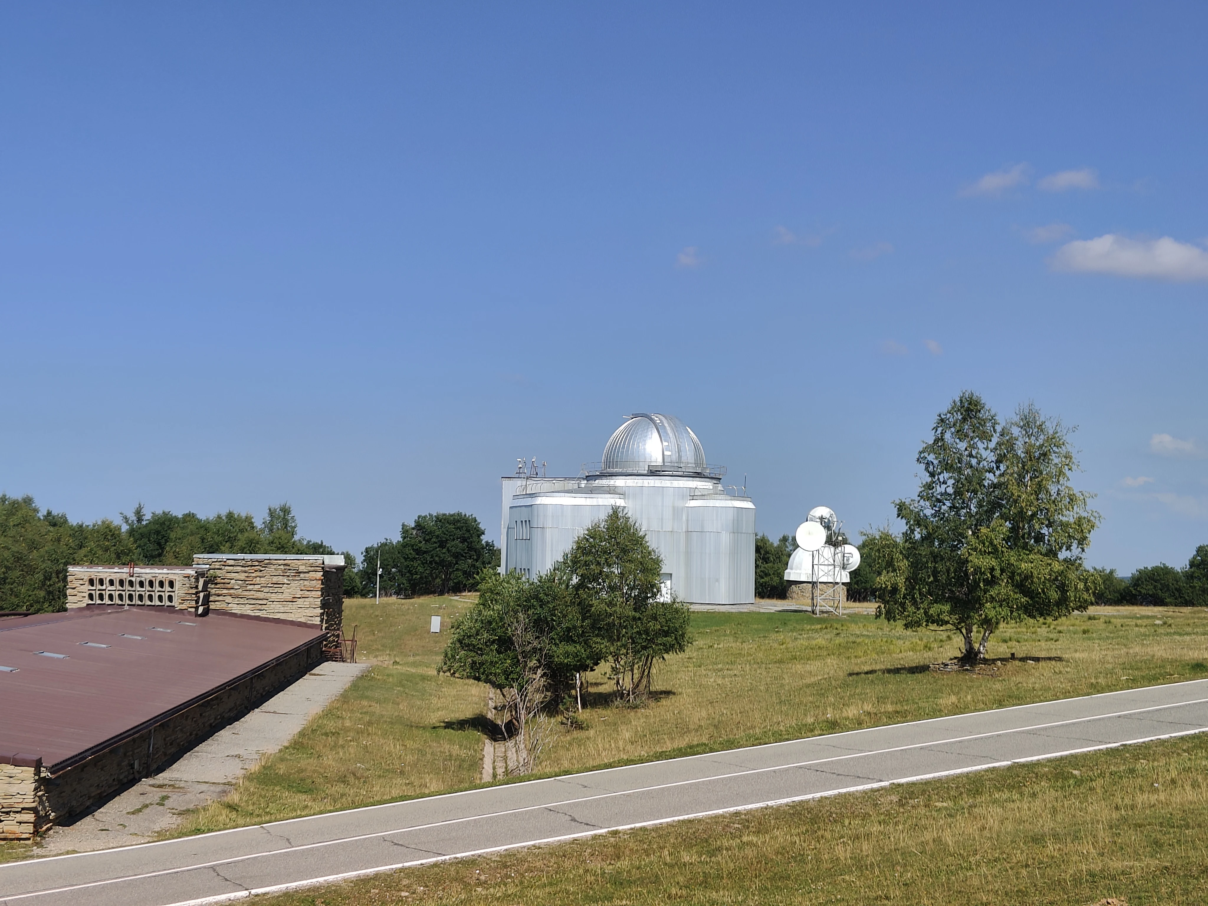 Первая настоящая вылазка за этот отпуск. В этот раз мы ездили снова на САО РАН (Специальная Астрофизическая Обсерватория Российской Академии Наук) в посёлке Нижний Архыз. В том году мы уже там бывали, но, во-первых, прикосновение к настоящей науке вдохновляет каждый раз, и я не знаю на какой бы раз мне туда надоело ездить. А, во-вторых, в этот раз был другой научный сотрудник, с совершенно другой лекцией, так что, скучать не пришлось! Кстати, этот телескоп — с самым большим в Евразии диаметром главного зеркала: аж 6 метров и весом в 42 тонны! Высота купола — 53 метра, а высота самого телескопа в вертикальном положении (как на фото) — более 40 метров!